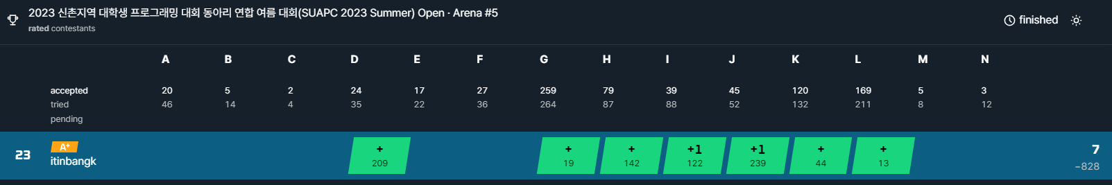 신촌지역 대학생(5개 대학..?) 프로그래밍 대회 동아리 연합 여름대회 Open이다. 본대회는 팀짜서 하는 대회인 것 같다. 이 대회 하면서 배운게 많아서 정리해야겠다 싶었다. (사실 플레 3개 푼거 박제하고 싶었다) 문제 세트는 https://www.acmicpc.net/category/detail/3855 에서 확인할 수 있다.
